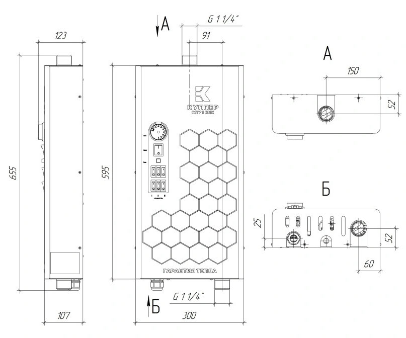 | Размеры электрокотла (ВхШхГ): | 595х300х123 мм |