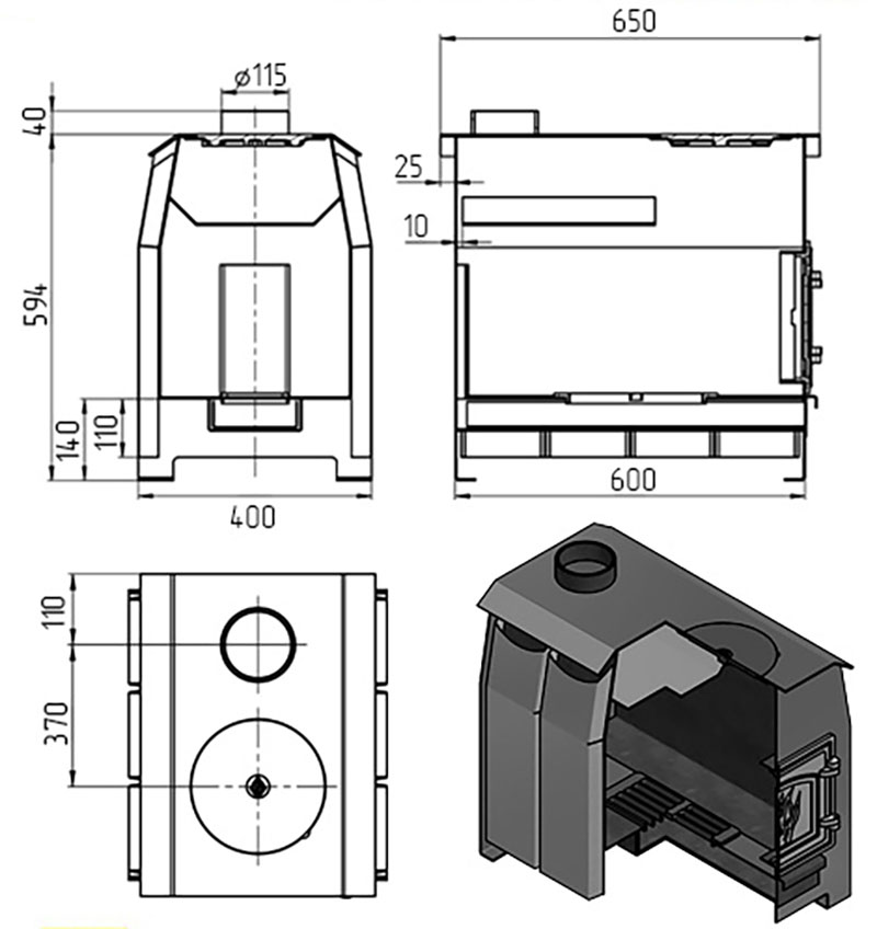 | Посадочный размер дверки топки (ШхВ): | 250х210 мм |