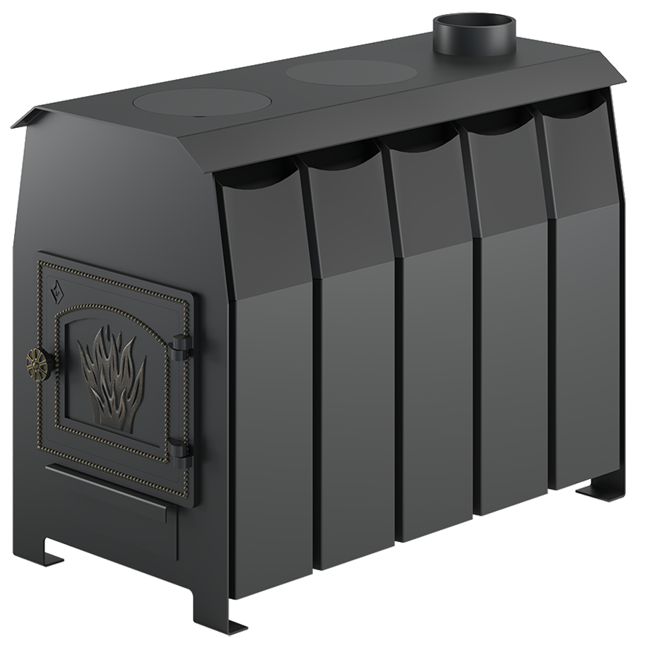- чугунная дверца и усиление конвекции за счет установленных на боковых поверхностях желобов;