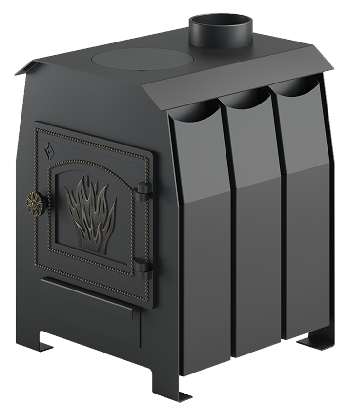 Отопительная печь Везувий Комфорт 70 ДТ-3 - предназначена для отопления небольших домиков, дач, садовых домиков, теплиц общим объемом отапливаемых помещений до 70 м.куб.. Это компактная, функциональная, с варочной плитой, простая в эксплуатации печь. Топка печи выполненная из особо прочной котловой стали 09Г2С толщиной от 3,5 до 6,5 мм в термически нагруженных местах с отбойником пламени для повышения КПД и снижения поступления пламени в дымоход. На верхней поверхности печи Везувий Комфорт предусмотрена конфорка со съемным диском диаметром 205 мм на которой можно готовить или разогреть пищу, что будет не лишним в дачных условиях. Дверца печи чугунная и оснащена запорным механизмом, что предотвращает её самопроизвольное открытие. Для обеспечения высокой динамики нагрева на боковых поверхностях приварены конвекционные желоба.