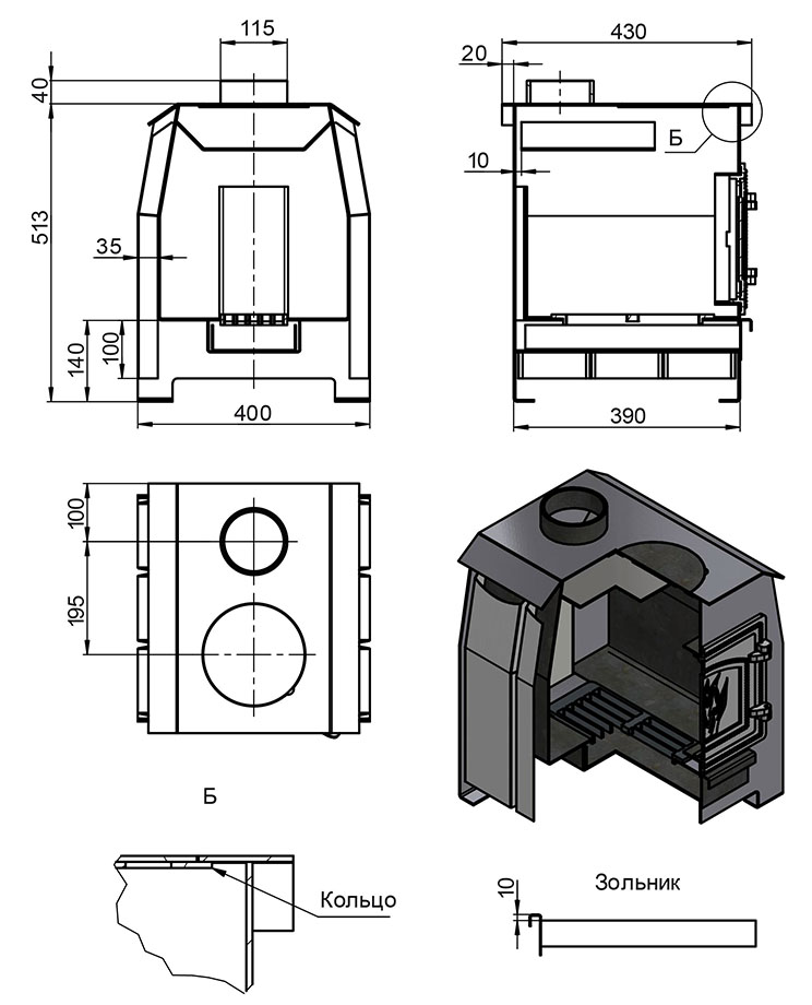 - топка из конструкционной стали толщиной от 3,5 до 6,5 мм;