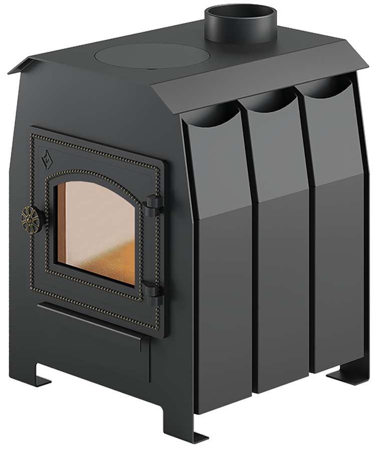 Отопительная печь Везувий Комфорт 70 ДТ-3С - предназначена для отопления небольших домиков, дач, садовых домиков, теплиц общим объемом отапливаемых помещений до 70 м.куб.. Это компактная, функциональная, с варочной плитой, простая в эксплуатации печь. Топка печи выполненная из особо прочной котловой стали 09Г2С толщиной от 3,5 до 6,5 мм в термически нагруженных местах с отбойником пламени для повышения КПД и снижения поступления пламени в дымоход. На верхней поверхности печи Везувий Комфорт предусмотрена конфорка со съемным диском диаметром 205 мм на которой можно готовить или разогреть пищу, что будет не лишним в дачных условиях. Дверца печи чугунная со стеклом и оснащена запорным механизмом, что предотвращает её самопроизвольное открытие. Для обеспечения высокой динамики нагрева на боковых поверхностях приварены конвекционные желоба.