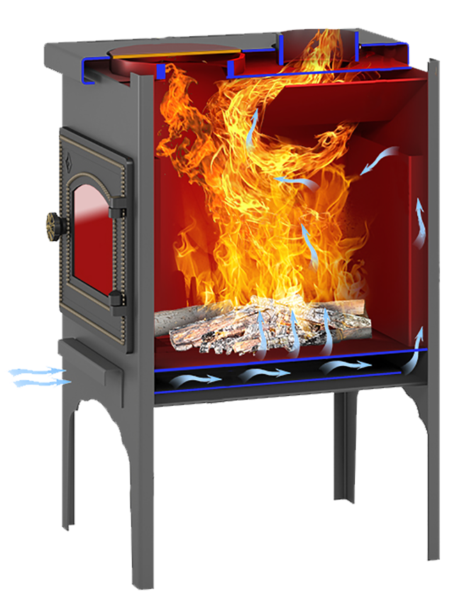 - чугунная дверца со стеклом;