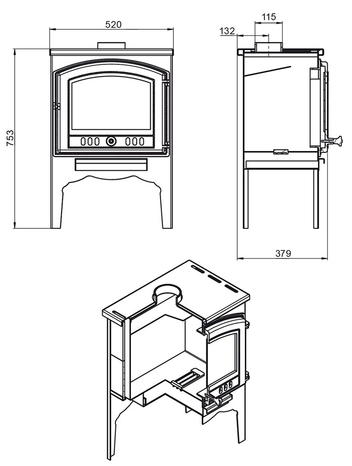 | Наружный размер дверки топки (ШхВ): | 490х415 мм |