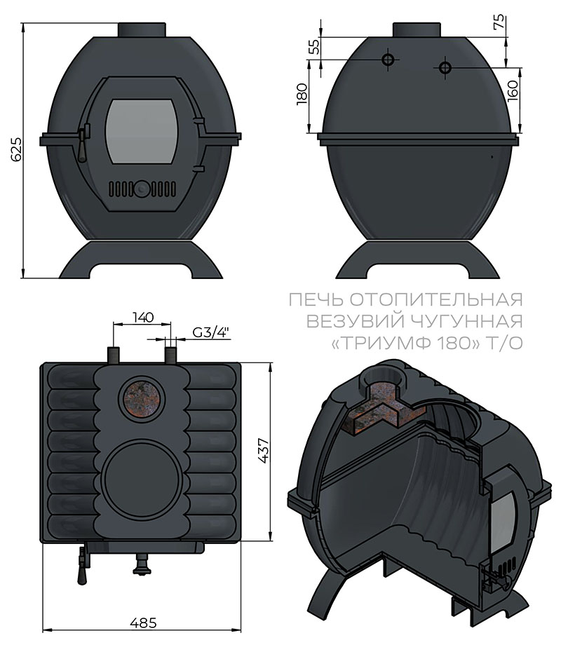 Особенности чугунной печи Везувий Триумф 180 с теплообменником: