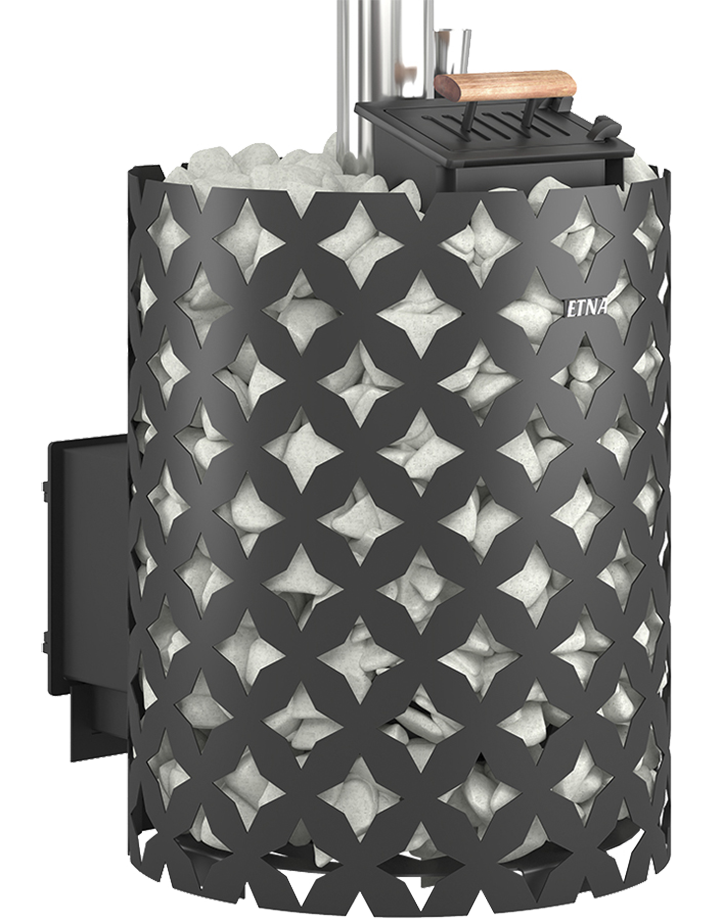 Печь для бани Этна 18 (Панорама) "М" с закрытой каменкой оснащена выносным топливным каналом для протапливания из соседнего с парным помещения бани. Дверца печи стальная с большом стеклом для организации эффекта камина в комнате отдыха. Каменка печи Этна 18 Панорама представляет собой сетку в которую закладываются камни, а основным достоинством печи является закрытая каменка. В закрытой каменке камни прогреваются до высоких температур, а пар, полученный с этих камней, мелкодисперсный (легкий), ценители бани это оценят несомненно. Также печь оснащена системой "Чистое стекло" для предотвращения закапчивания стекла.