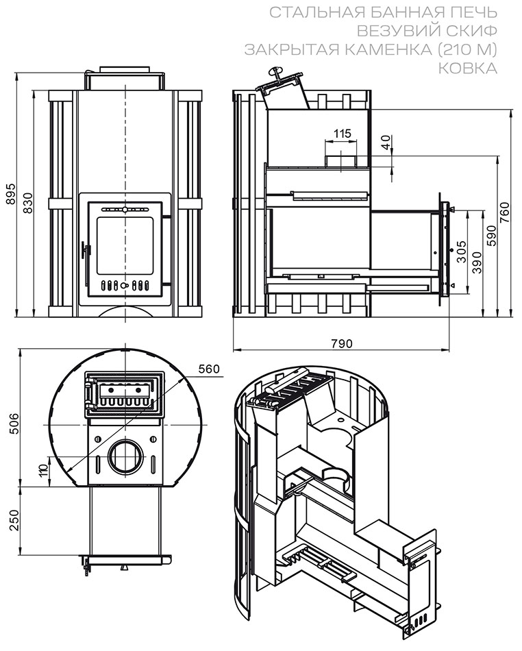 Особенности печи для бани Везувий Скиф с закрытой каменкой Ковка (210) "М":