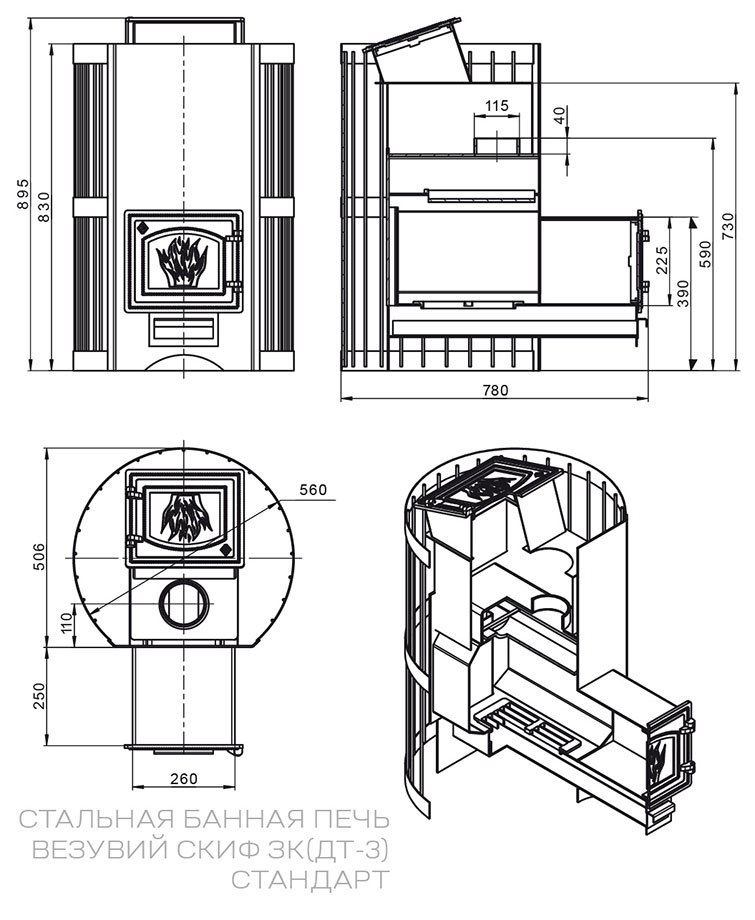 Особенности печи для бани Везувий Скиф с закрытой каменкой Стандарт (ДТ-3):